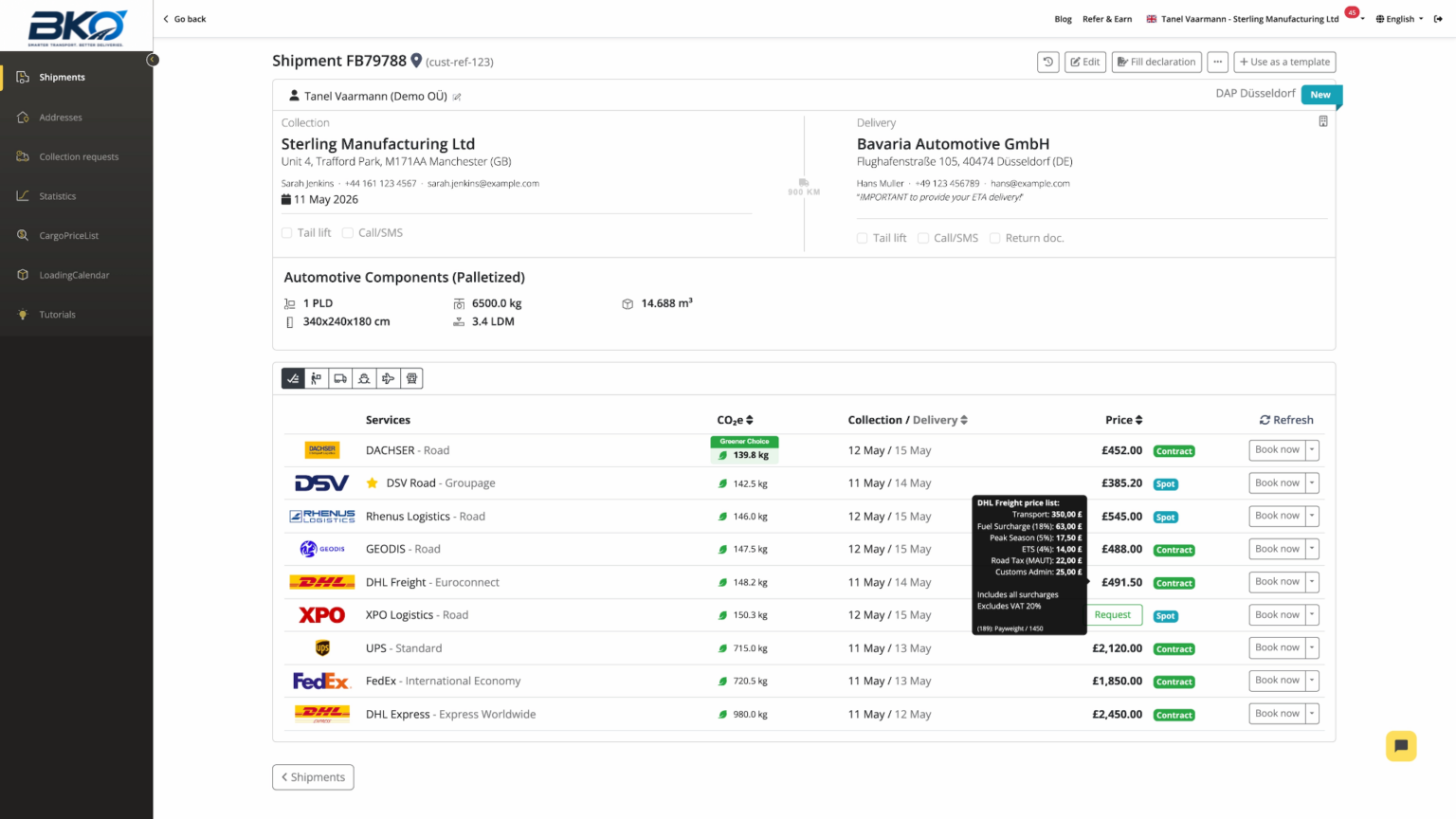 Carrier websites only show you that carrier’s rates and services. BKO compares rates from all your carriers in one place, saving you time and ensuring you always get the best price. Plus, you can book shipments, track all deliveries, and store documents in one dashboard instead of logging into multiple portals, and you can even give access to your colleagues or suppliers